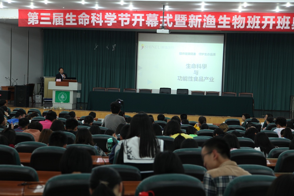 會議中,新漁生物董事長為川農大生命科學學院學生作專題報告《生命科學與功能性食品產業》