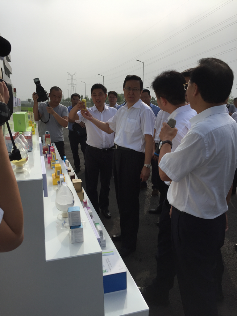 2017年7月14日上午,眉山市新任市委書記慕新海同志視察經開新區,經開新區領導在新漁生物廠區向慕書記匯報各企業發展情況。