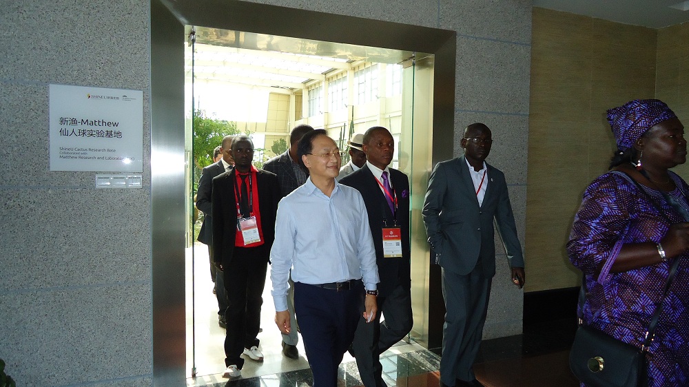 參觀中,國際友人與新漁公司領(lǐng)導就仙人掌科植物的研究及利用進行了深入交流。在新漁中醫(yī)藥歷史文化館里,幾內(nèi)亞友人驚嘆于博大精深的傳統(tǒng)中醫(yī)藥智慧。