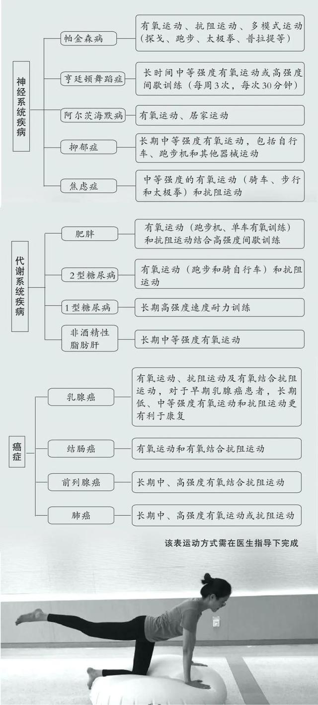 “運動干預(yù)只是一種輔助療法,但并不能說可以治療該疾病。”張一民教授表示,現(xiàn)在強調(diào)體醫(yī)融合,在給病人開藥物處方的同時再開運動處方,醫(yī)生會根據(jù)病人的患病情況,提出建議運動的方式、運動強度、運動時間、運動頻率等,注意事項等。開具運動處方最好由運動專家與臨床醫(yī)生協(xié)商制定。