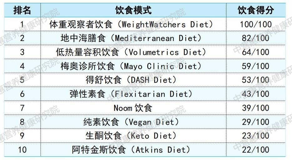 2024年初,《美國新聞與世界報道》發(fā)布了最佳減肥飲食排名,體重觀察者飲食、地中海飲食、低熱量容積飲食位列前三。以下列出了排名前十位的最佳減肥飲食以及飲食得分(表2),供大家參考。