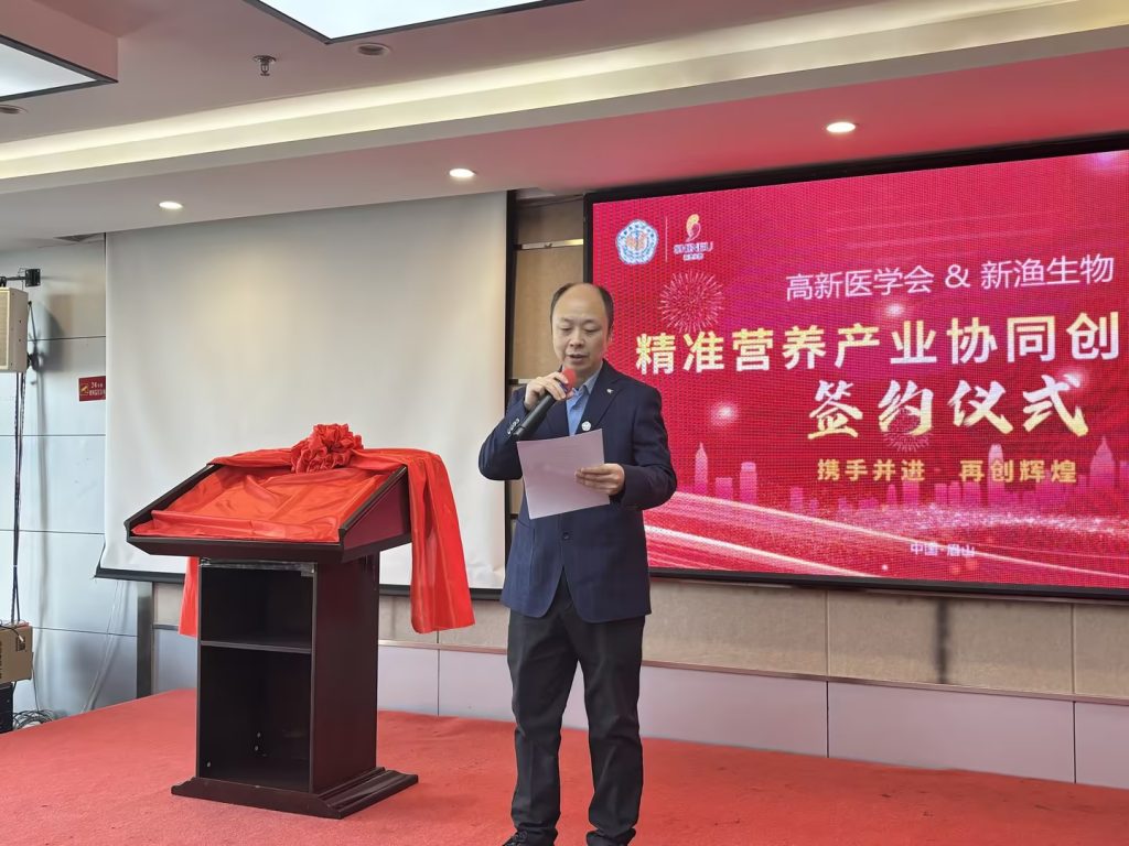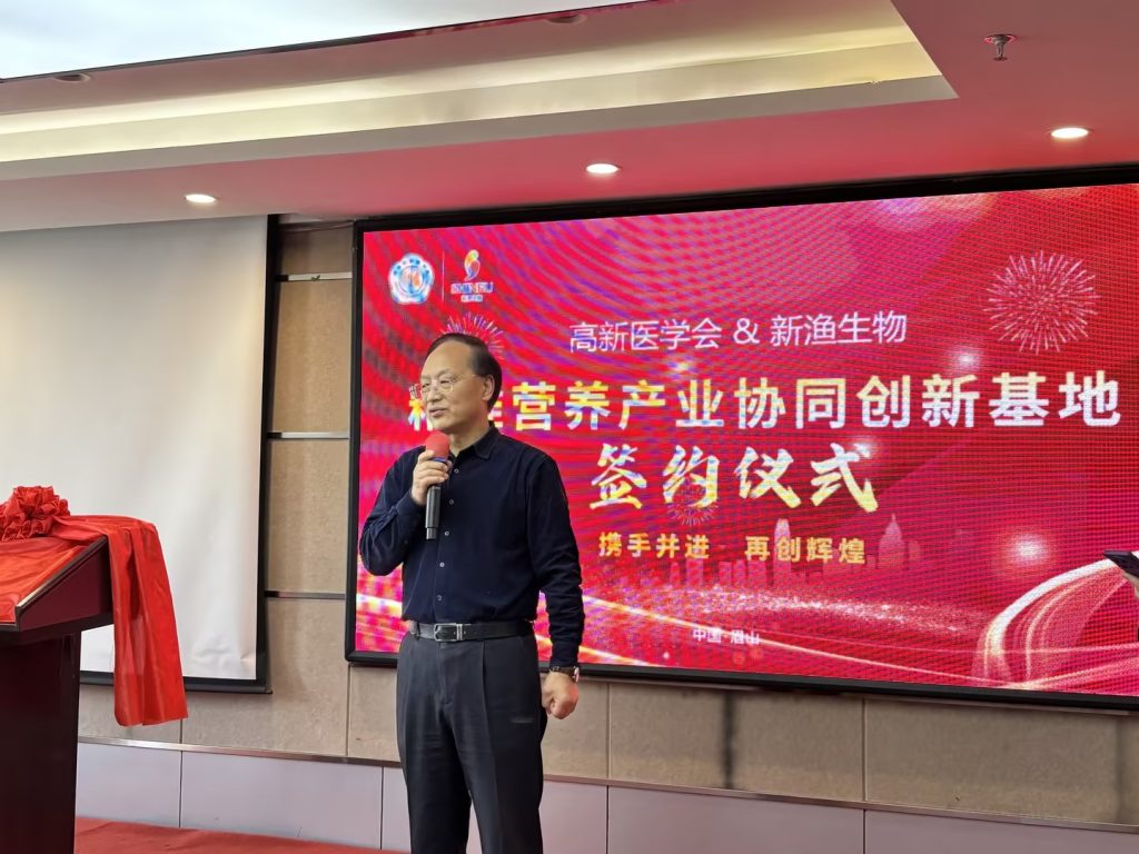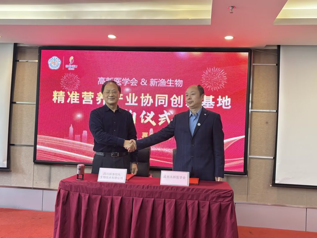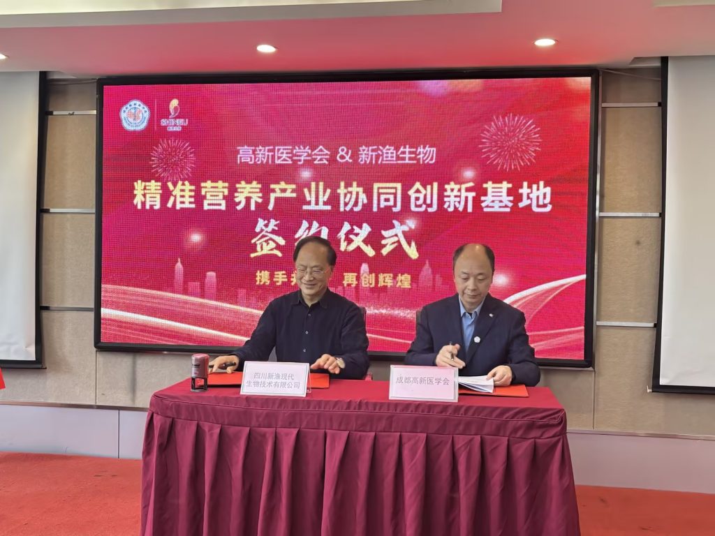 簽約儀式上,成都高新醫學會醫工融合協同創新中心馮懷志主任和四川新漁現代生物技術有限公司董事長馬建中分別致辭,表達了雙方對此次合作的高度重視和美好愿景,隨后雙方代表共同簽署了合作協議。簽約儀式結束后還舉行了成都高新醫學會精準營養產業協同創新基地的授牌儀式。