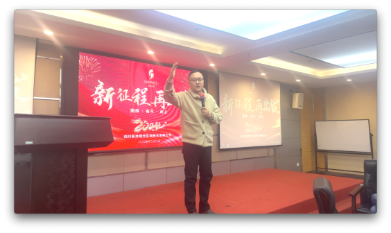 市場部朱進(jìn)強(qiáng)先生致辭,代表市場部將士們吹響2024新的號角。
